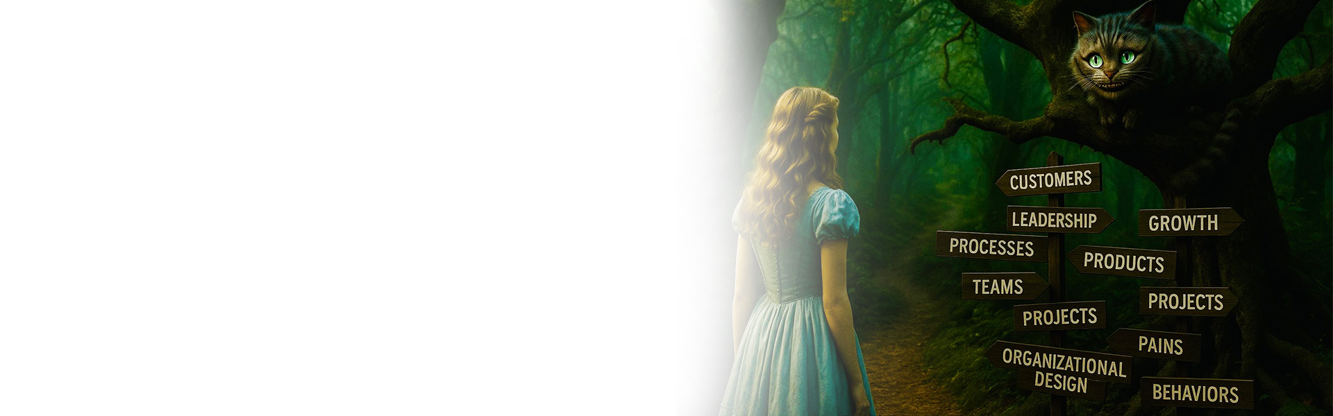 Ever feel like Alice, wandering through the wonderland of products, projects, teams, many processes, endless tools, missed opportunities, client needs and pains, and a lot of opinions on how organisations and businesses should be?